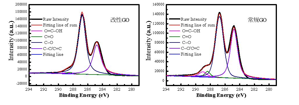 圖5. 不同碳氧比的氧化石墨烯材料XPS C1s譜圖
